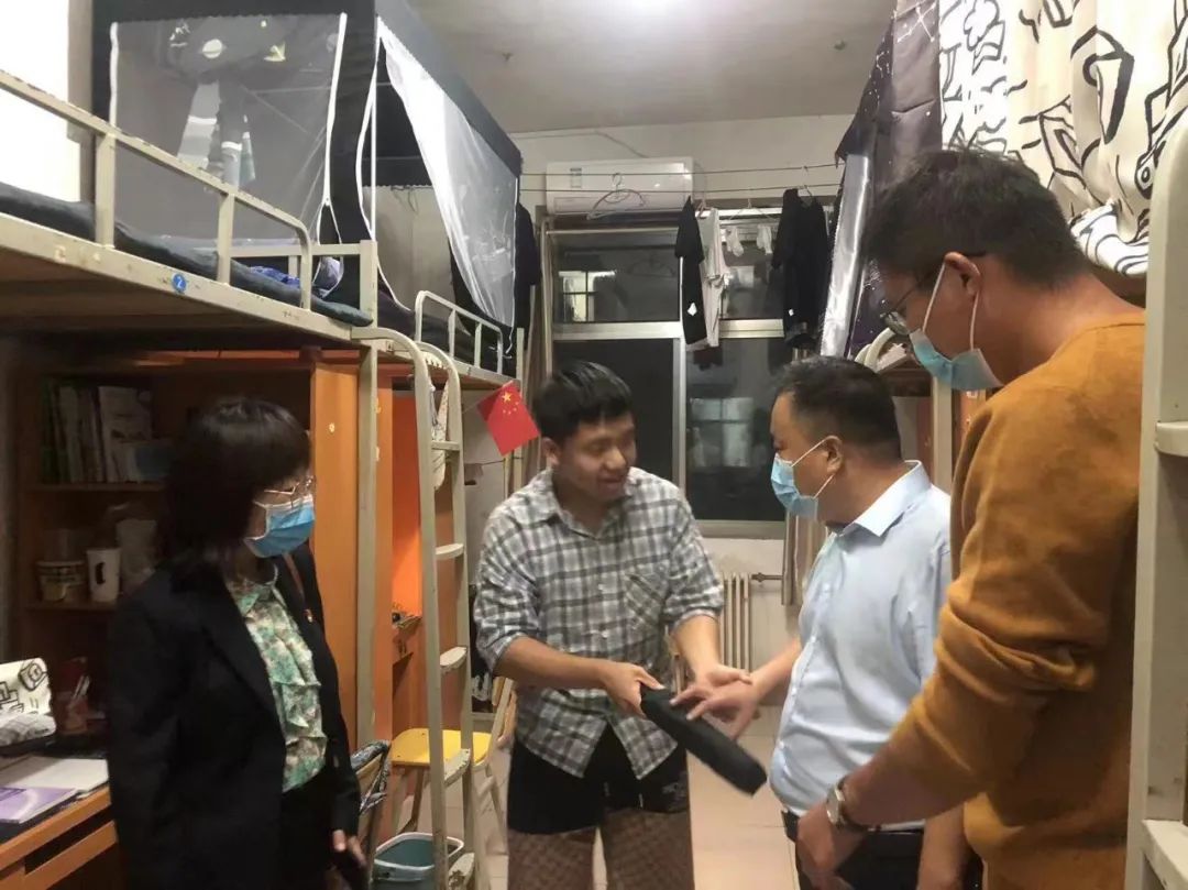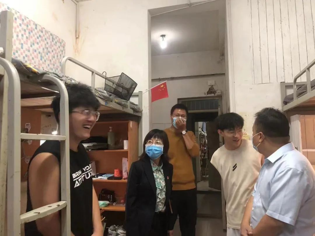 在和学生的交谈中,王国华书记和王春霞院长了解了返校后学生的学习和生活情况,倾听他们的实际诉求,并且对于学生所提出的相关问题给予及时解答,并且引导学生尽快的适应大学生活。同时学院领导也提醒学生,要注意宿舍用电安全,提高安全防范意识,营造一个良好的宿舍环境。