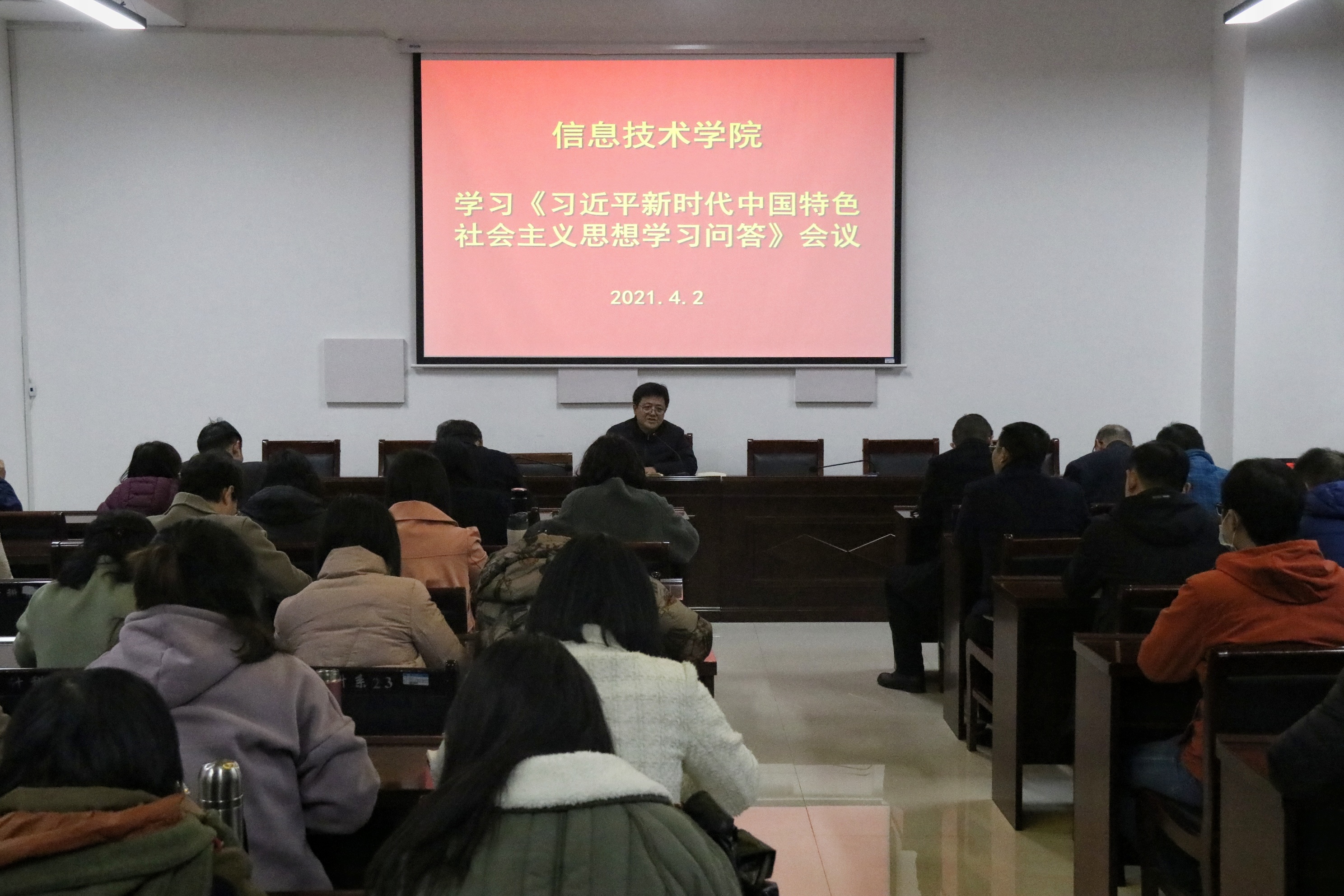 4月2日,sunbet申搏于梁园校区三商楼112室举办学习《习近平新时代中国特色社会主义思想学习问答》会议。此次会议由党总支书记张辉主持。sunbet申搏全体教职工参加本次会议。