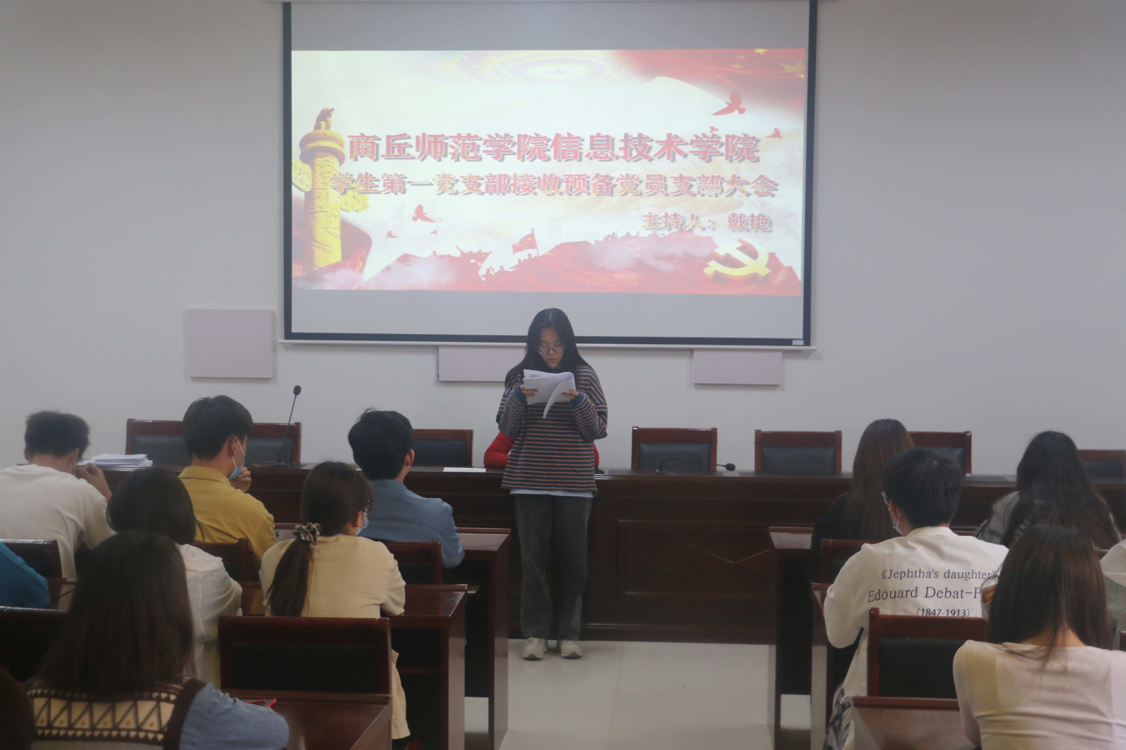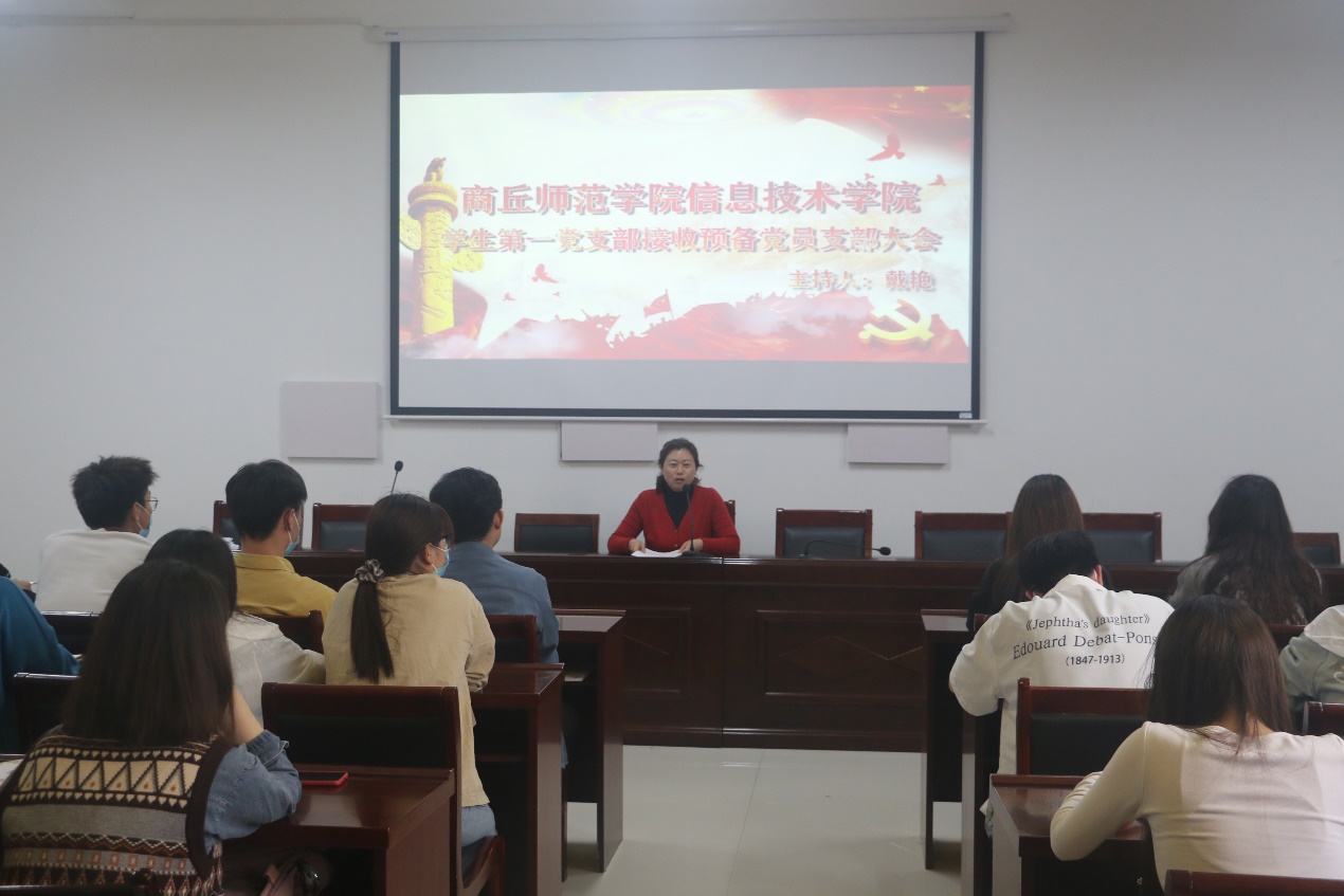 5月7日,sunbet申搏于梁园校区三商楼112室召开第一支部接收预备党员支部大会。sunbet申搏第一党支部书记戴艳担任主讲。18、19级数据科学与大数据技术专业入党发展对象参加此次大会。