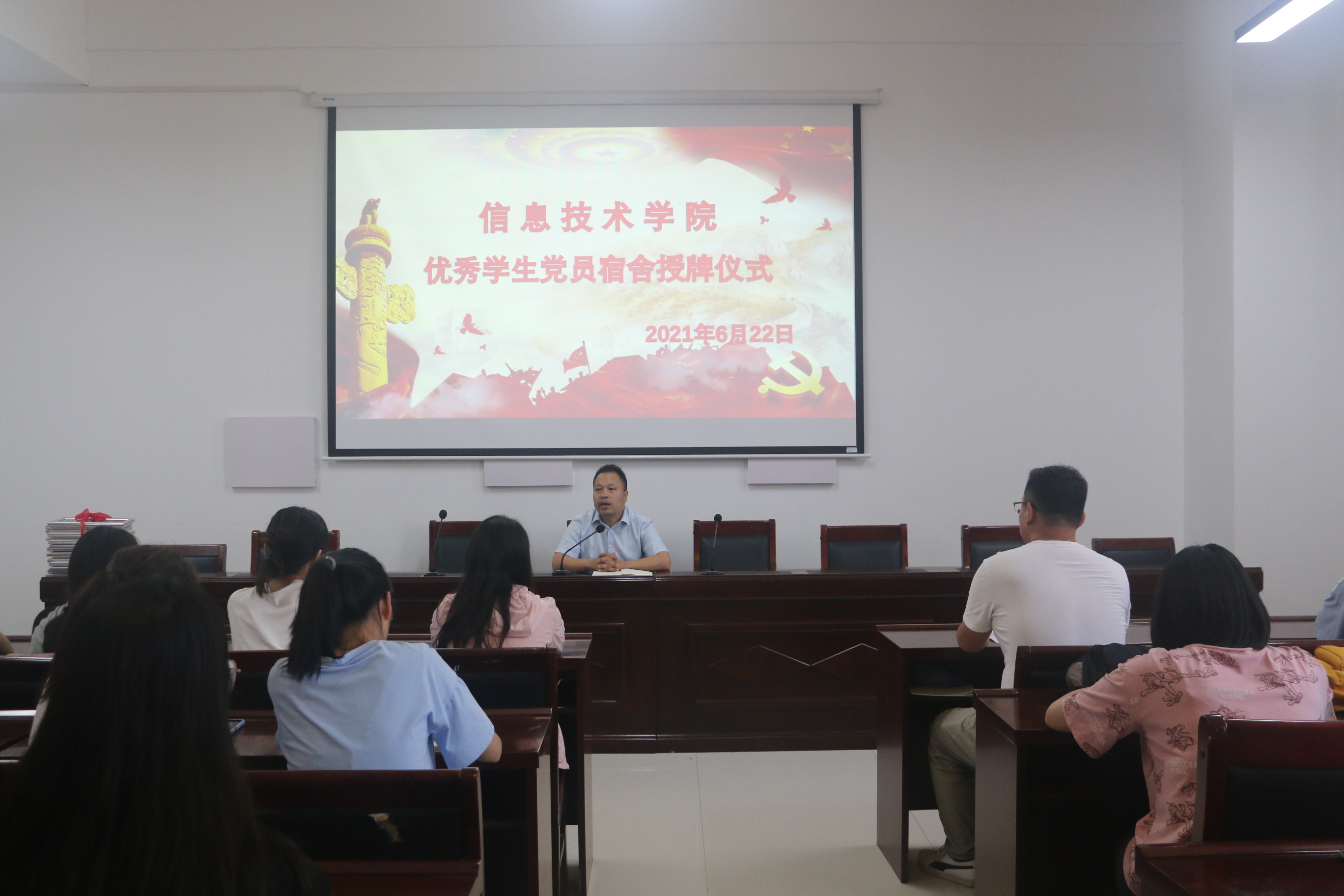 接着由王国华书记为本次授牌仪式致辞。他强调作为一名共产党员一定要守初心、担使命,并要按照党员的行为标准严格要求自己。接着他又提出三点建议:一要提高认知,积极融入党团活动,希望大家既要爱护宿舍,也要合理利用宿舍;二要强化职责,作为学生党员一定要找准方向,做到守土有责、守土尽责,高扬思想旗帜,学习并践行习近平新时代中国特色社会主义思想,将青春梦融入伟大的中国梦;三是要做好学习与实践等的表率,发挥典型的引领,对社会付出自己的一份贡献。