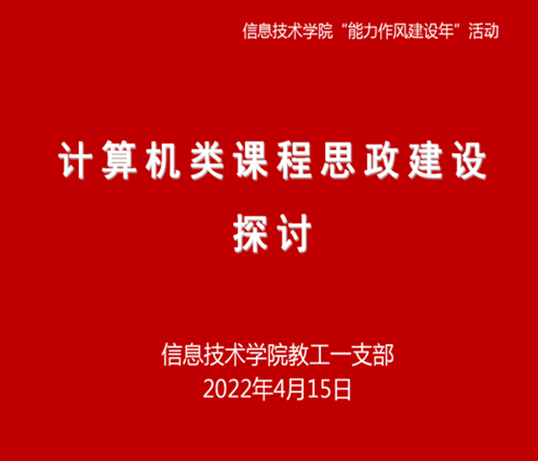 为积极响应我校“能力作风建设年”活动,sunbet申搏教工一支部于2022年4月15日下午在线上开展了以“计算机类课程思政建设探讨”为主题的专题教研会。会议由教工一支部书记陈丽娜主持。