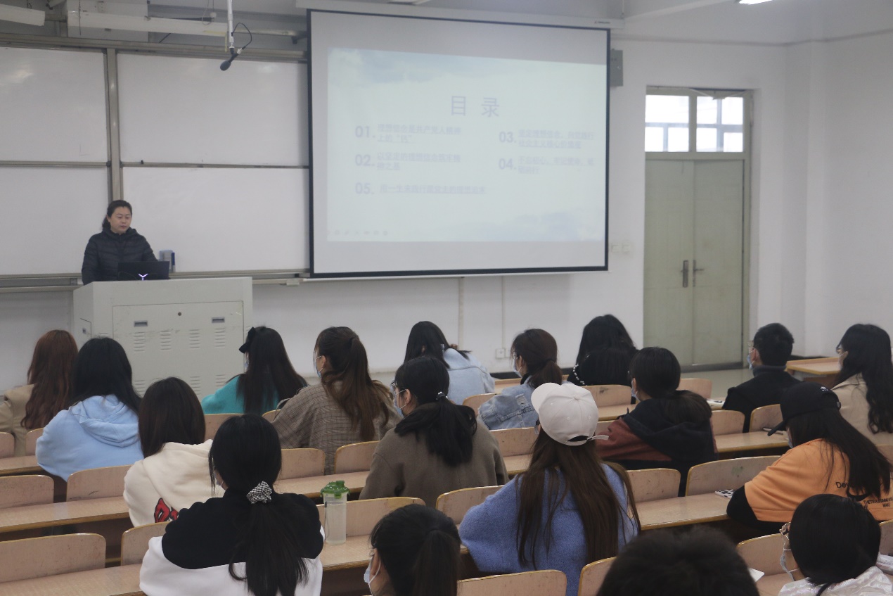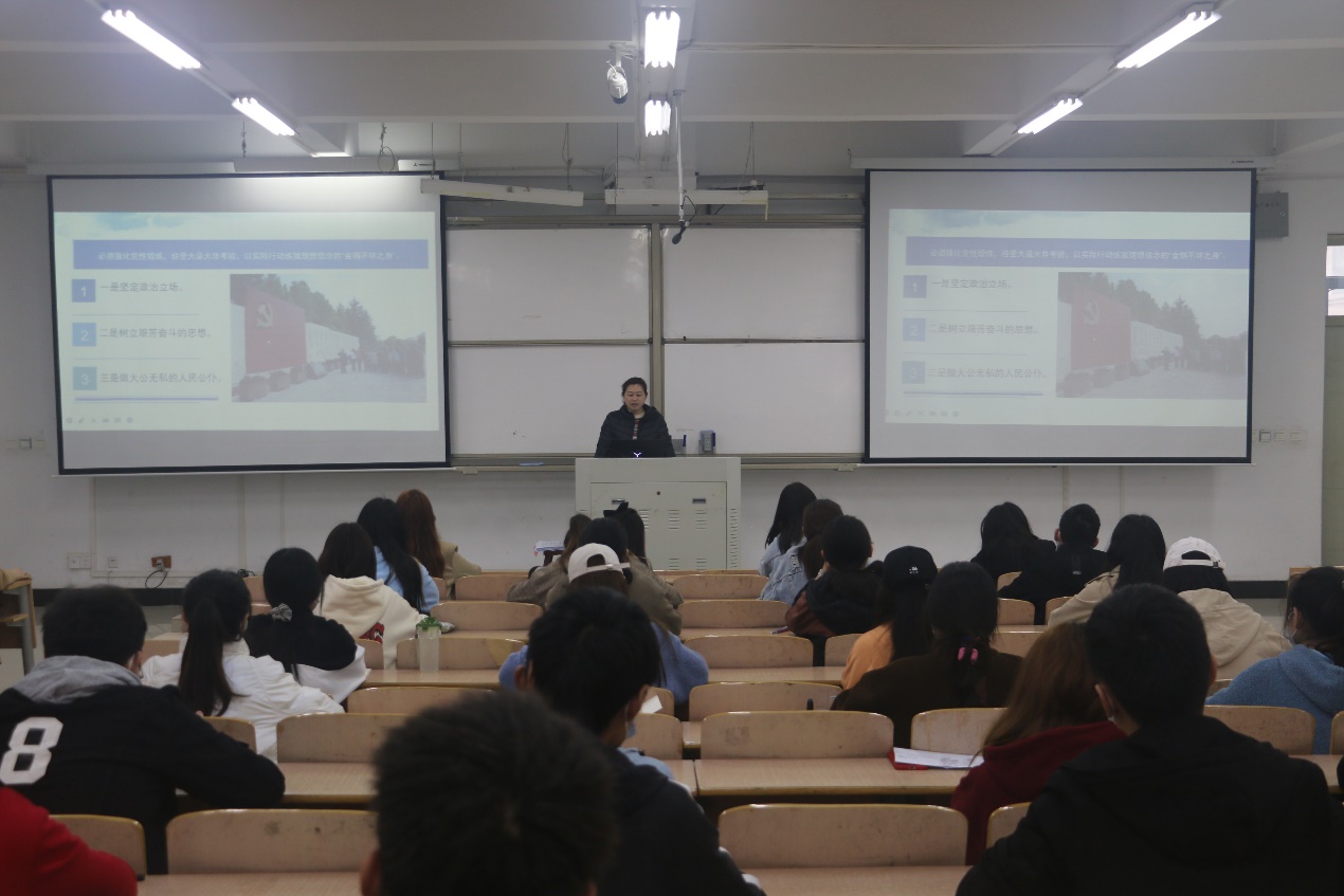 课上,戴老师以“坚定理想信念:心中有信仰,脚下有力量”为主题展开培训。首先,她强调了理想信念在共产党精神中的重要性并深入解读了它给予共产党人的精神力量。继而,她指出全体入党积极分子必须强化党性训练及加强政治理论武装来强化理想信念之基。最后,戴老师为在场入党积极分子播放了一段微视频,微视频从道路自信、理论自信、制度自信、文化自信四个维度出发,再次呼吁入党积极分子要坚定理想信念,不忘初心,牢记使命,砥砺前行!