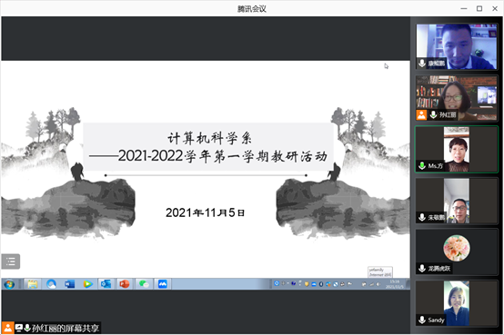 开学至今已经进入第九周,随着教学时间的推移,经历线上教学和线下教学,本学期教学工作目前正有条不紊地进行中。11月5日下午4点,计算机科学系采用腾讯会议平台开展教学探讨,本次活动由孙红丽老师主持,主要针对两个事项展开。