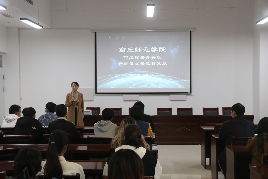 10月9日,sunbet申搏百度松果人才培养菁英班开班仪式在三商楼112室顺利举行。sunbet申搏副院长刘佳,菁英班学院导师王帅芳博士,班主任彭会锋老师和50余名菁英班学生代表现场参加开班仪式,其余老师和学生则通过线上会议的形式云端参与。开班仪式由王帅芳主持。