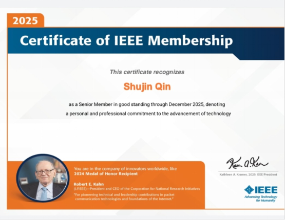 近日,国际电气与电子工程师协会(Institute of Electrical and Electronics Engineers, IEEE)正式发布官方通知,经审查专家组(Review Panel)严格评审,sunbet申搏秦术晋老师成功晋升为 IEEE Senior Member(IEEE 高级会员)。
