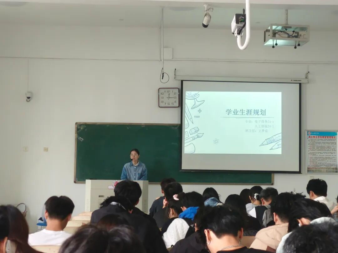 专业认知上,班主任紧扣行业前沿动态,深入剖析专业特色:针对计算机科学与技术专业、结合人工智能大模型、大数据分析等热点应用,强调编程能力与算法思维的重要性;软件工程专业则围绕5G时代网络安全,突出协议掌握与设备配置的实践技能;物联网工程专业以工业互联场景为切入点,讲解跨学科知识融合与传感器技术,明晰专业方向。
