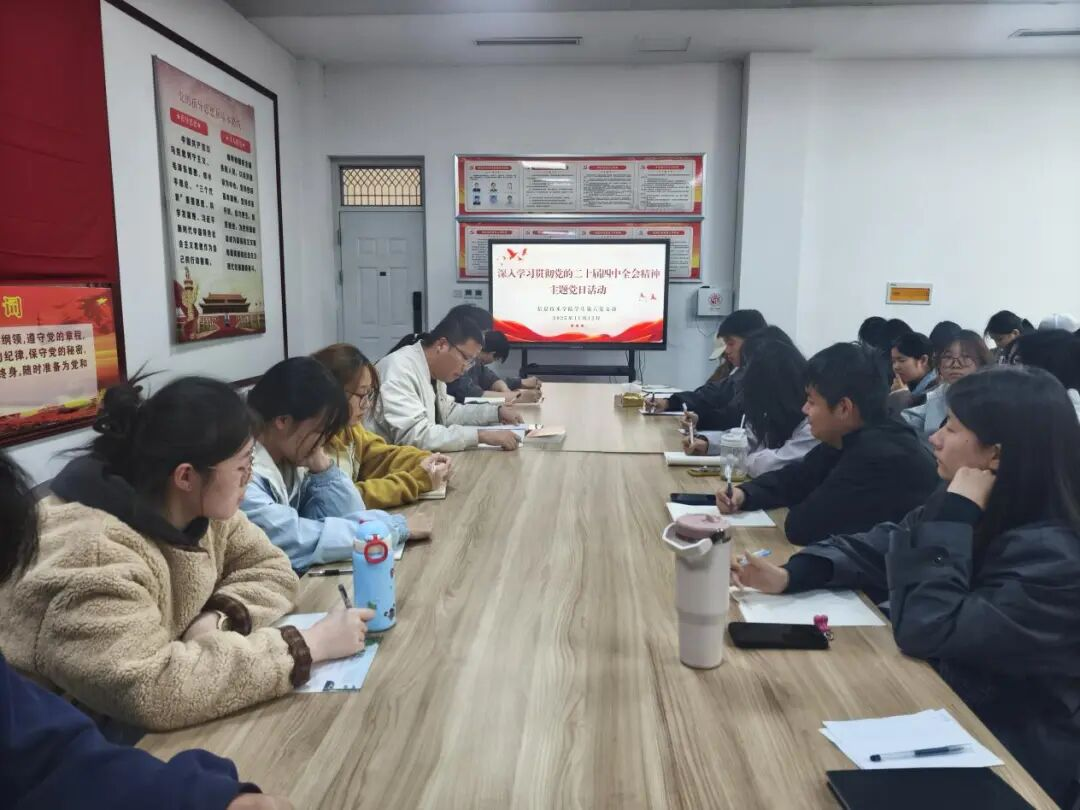 11月12日,sunbet申搏学生第六党支部在三商楼114会议室开展了学习贯彻党的二十届四中全会精神主题党日活动,活动由党支部书记杜冰主持,支部全体学生党员参加。