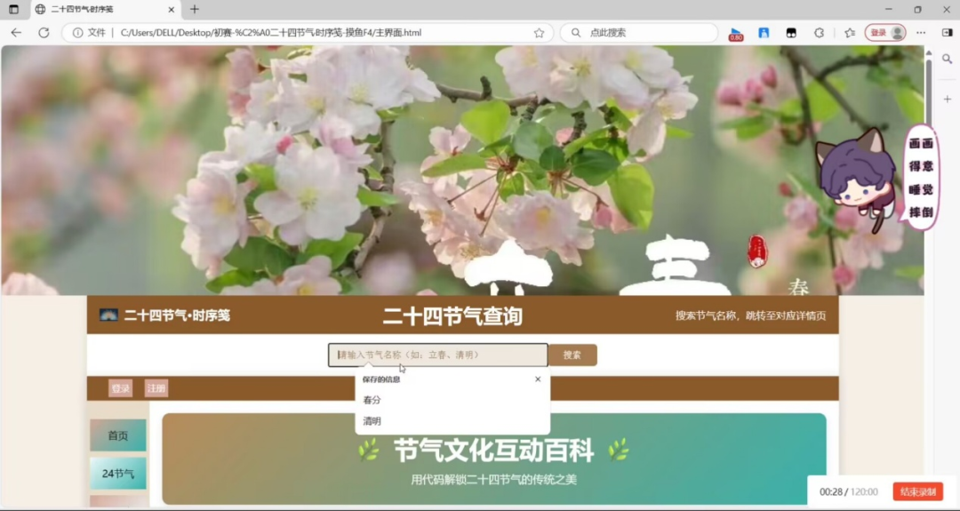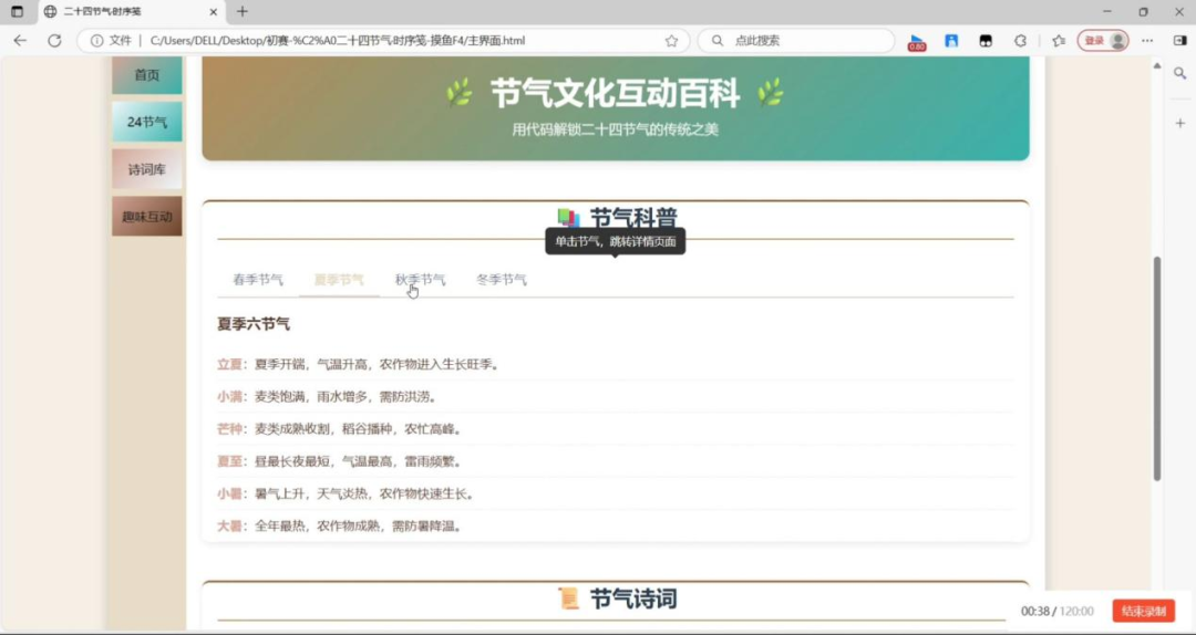 本次比赛以传统节气这一中华优秀传统文化为载体,通过编程技术,让节气知识走进课堂,走入生活。初赛阶段,共吸引了67支队伍225人参赛,作品涵盖节气主题的智能提醒工具、互动科普网页等多种形式,由评委团从作品对文化融合度、创意表现力等核心维度进行严格评审打分,最终确定8支队伍成功晋级决赛。