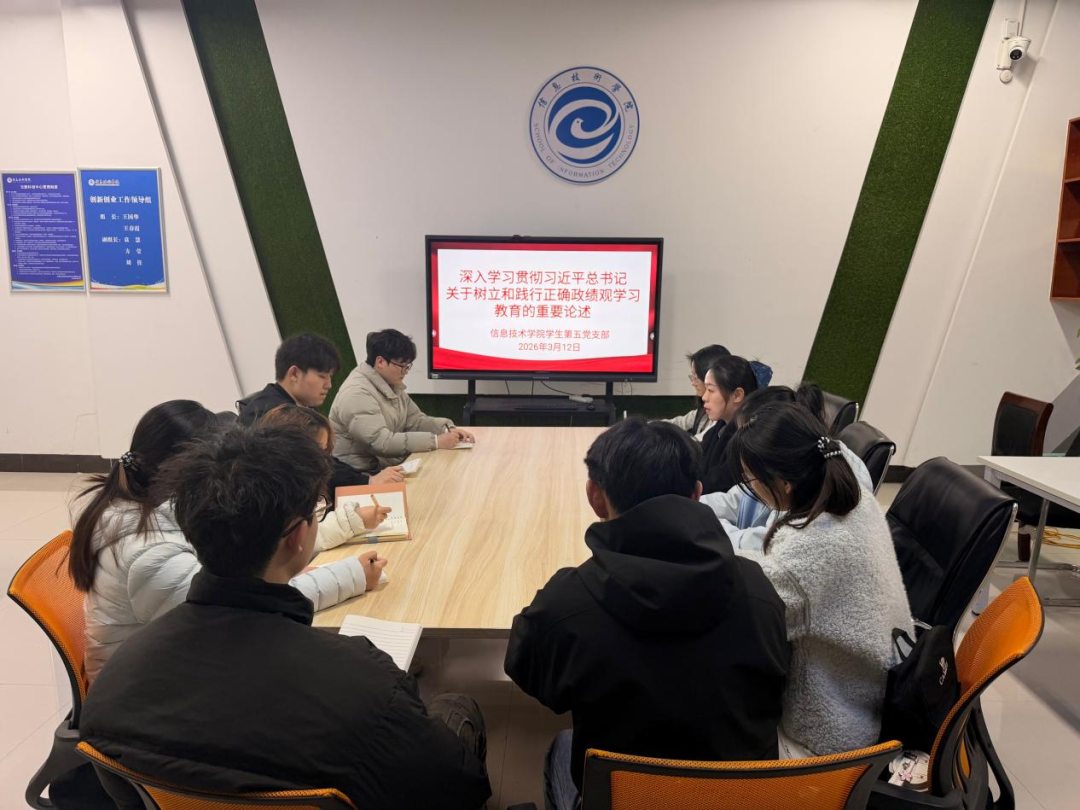 3月13日,sunbet申搏学生第五党支部在三商楼102会议室开展深入学习贯彻习近平总书记关于树立和践行正确政绩观的重要论述主题党日活动。党支部书记吴楚主持学习,全体党员参加。