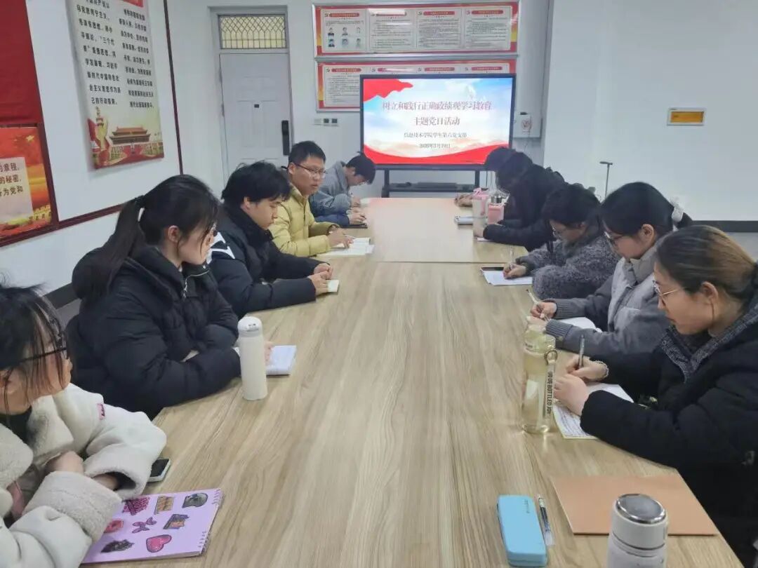 3月19日,sunbet申搏学生第六党支部于三商楼114会议室开展树立和践行正确政绩观学习教育主题党日活动,会议由党支部书记杜冰主持,全体党员参加。